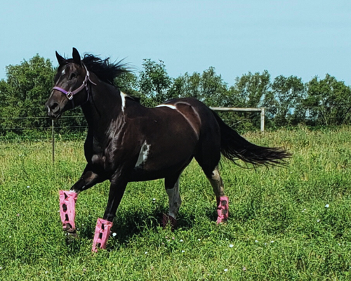 Freebird, a beautiful Paint mare, is Jodi’s personal horse. She often observes coaching sessions from a distance, choosing when and how to engage. Having faced her own challenges, she sets her boundaries with care. If she invites you in for scratches, please respect her space, especially around her head and ears.