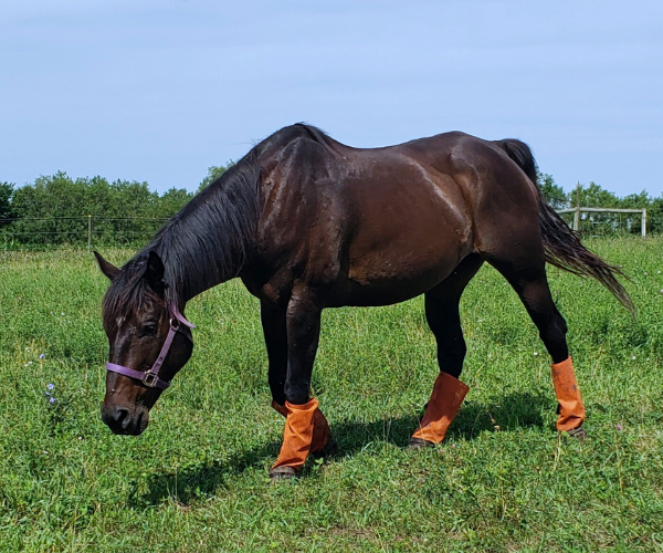 Seeker is mostly retired, embracing a slower pace in the later years of her life. This Quarter Horse mare spent much of her time as a high-energy games horse, racing and collecting prizes. Now, she enjoys a quieter role, helping teens learn the essentials of horse care and deepening their connection with these incredible animals.